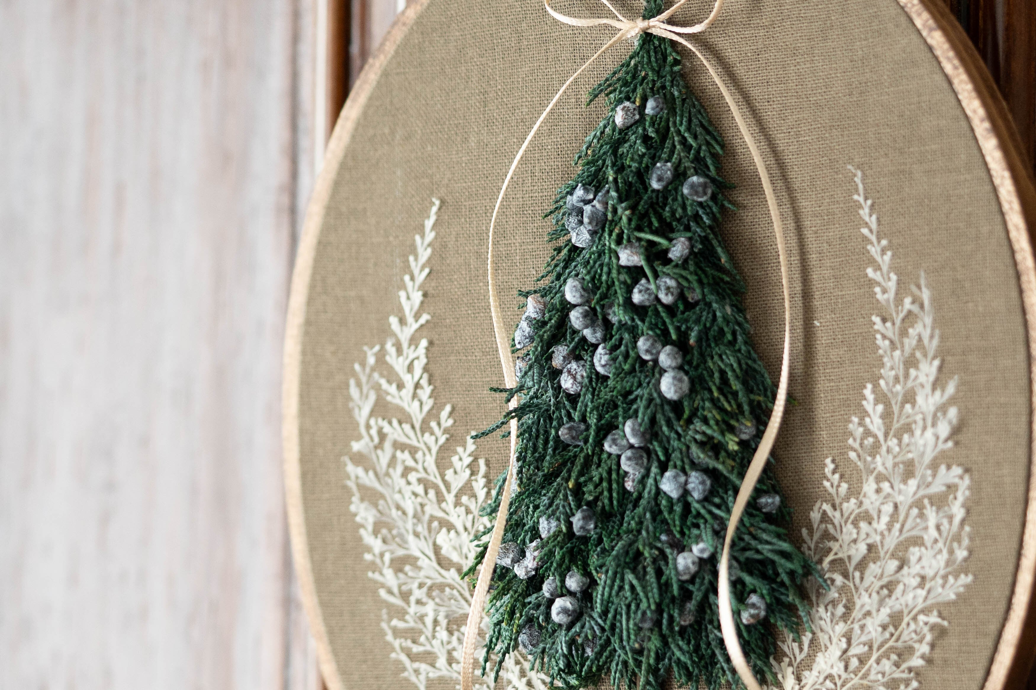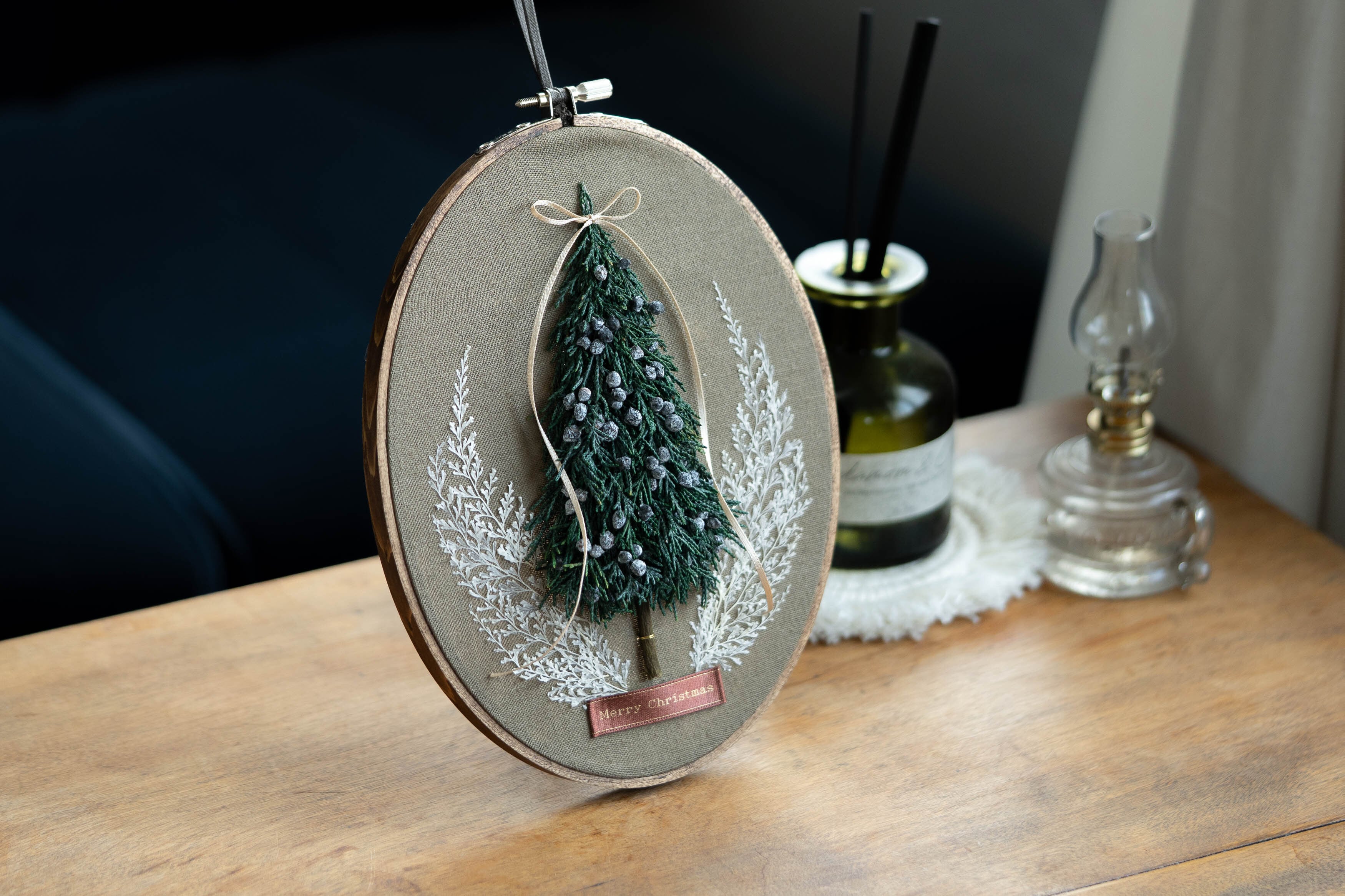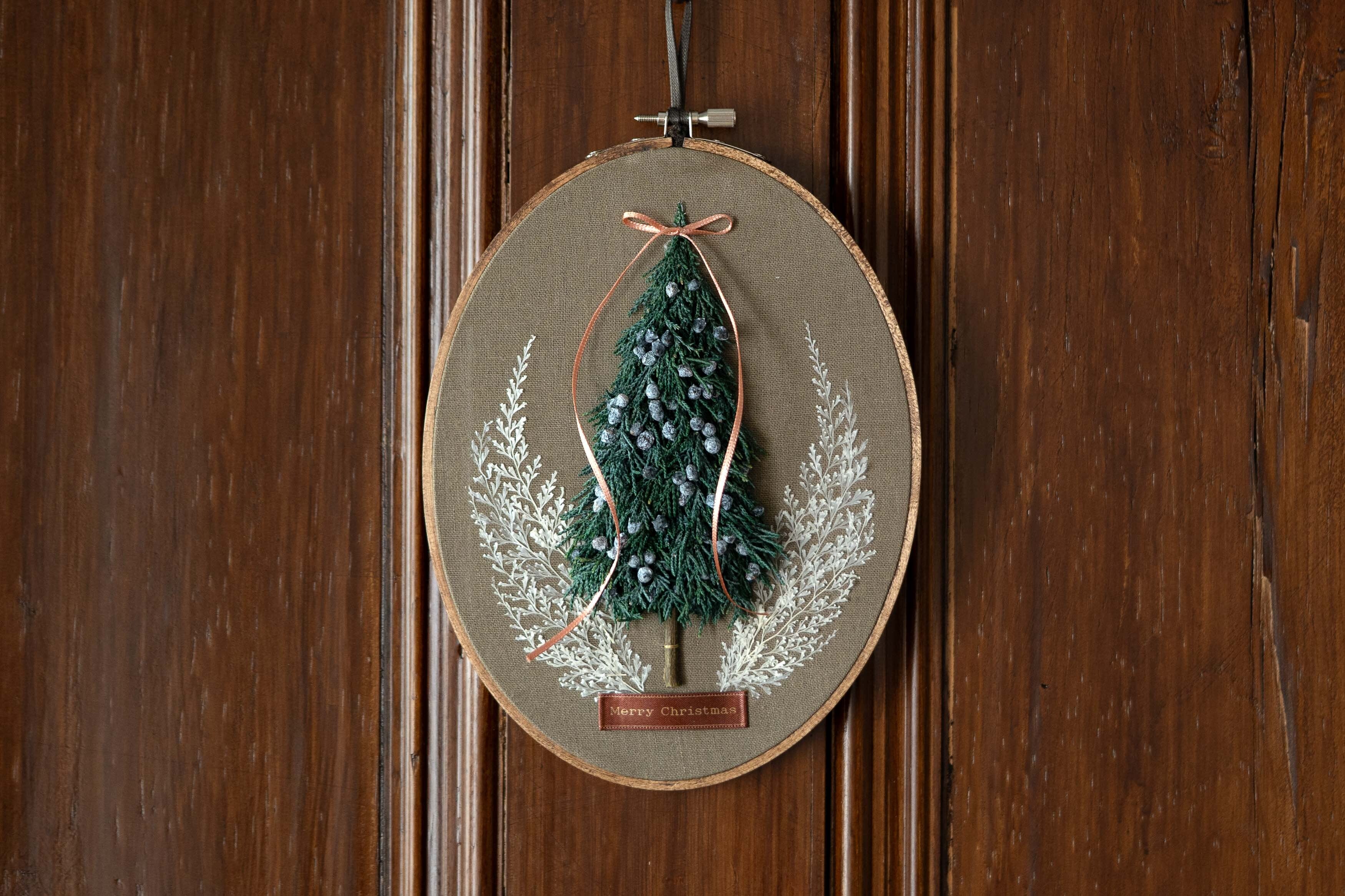楕円形の刺繍枠でツリーオーナメントを作ります。