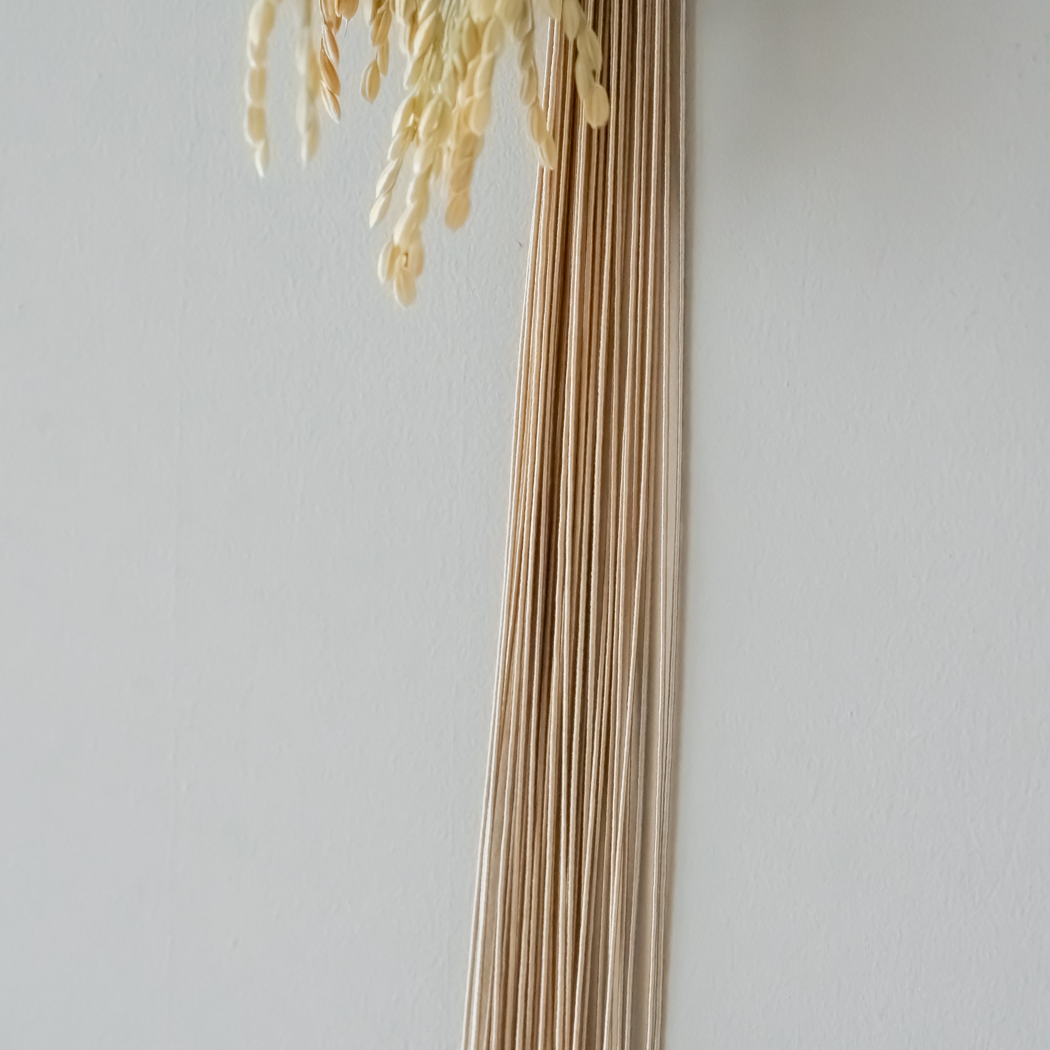 使用素材:ラフィア、絹巻水引、ナンキンハゼ、稲穂、プルームリード、紐