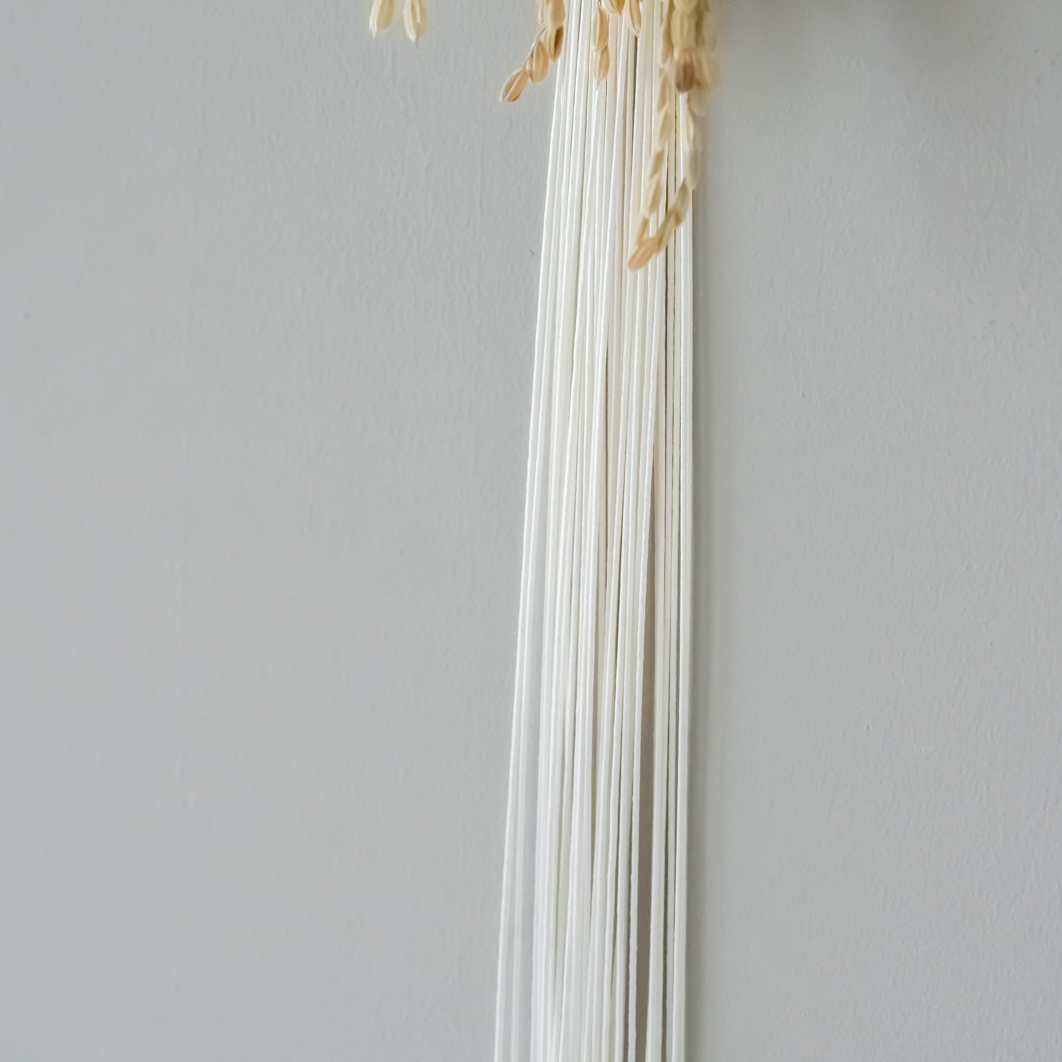使用素材:ラフィア、水引、ナンキンハゼ、稲穂、プルームリード、紐